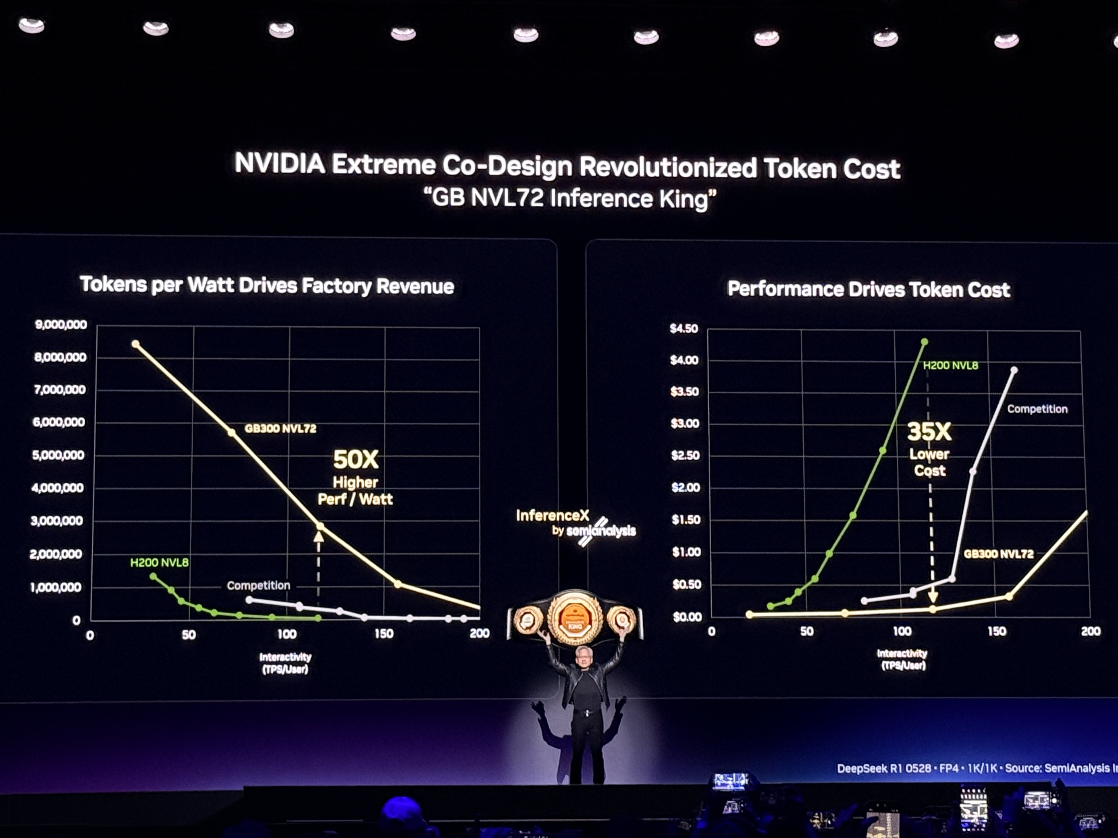 在他看来,只有在AI工厂安置了最好的计算系统,才能获得最低的token成本,而英伟达的token成本基本无可匹敌,原因在于极致的协同设计。