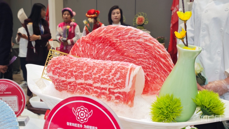“2012年张家川红花牛获得农业部农产品地理标志认证,2025年成功转化为国家地理标志保护产品。”黎文斌说,目前全县肉牛饲养量达19.7万头,全产业链综合产值21亿元,红花牛的特点是生长快、肉质鲜嫩、大理石纹明显。