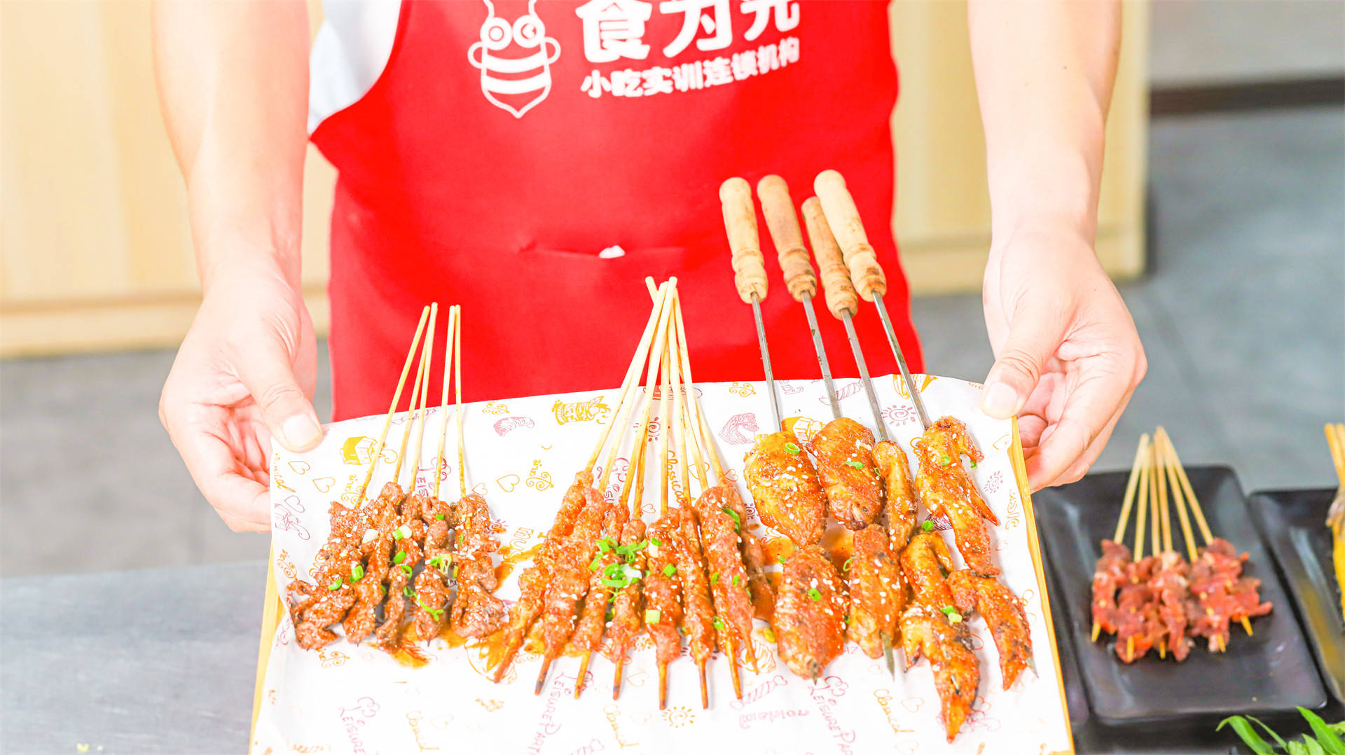 实操要点:可做流动摆摊或社区小店,主打羊肉串、烤蔬菜、烤豆腐等经典款,搭配秘制酱料形成差异化。