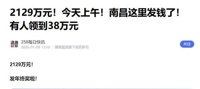 《2129万元现金 江西安义种粮大户连续十五年给农户发年终奖》中国新闻网2026-01-09 19:11