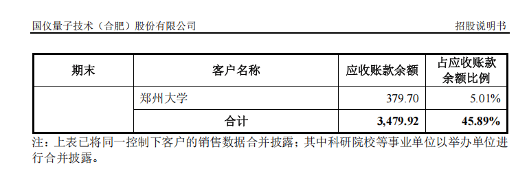 招股书信息显示,国仪量子应收账款主要为高校及科研院所、央国企等企事业客户,报告期各期末,公司应收账款前五名余额合计占比分别为45.89%、43.98%、31.13%和26.90%。集中度较低且逐年下降,与公司客户集中度相对较低的现状和变动趋势基本一致。
