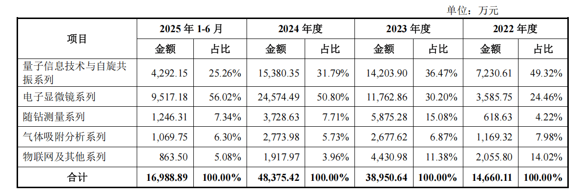 招股书信息显示,报告期内,国仪量子营收快速增长,具体数据显示,主营业务分别实现营收14,660.11万元、38,950.64万元、48,375.42万元和16,988.89万元,近三年收入复合增长率超过80%。