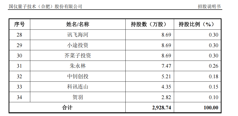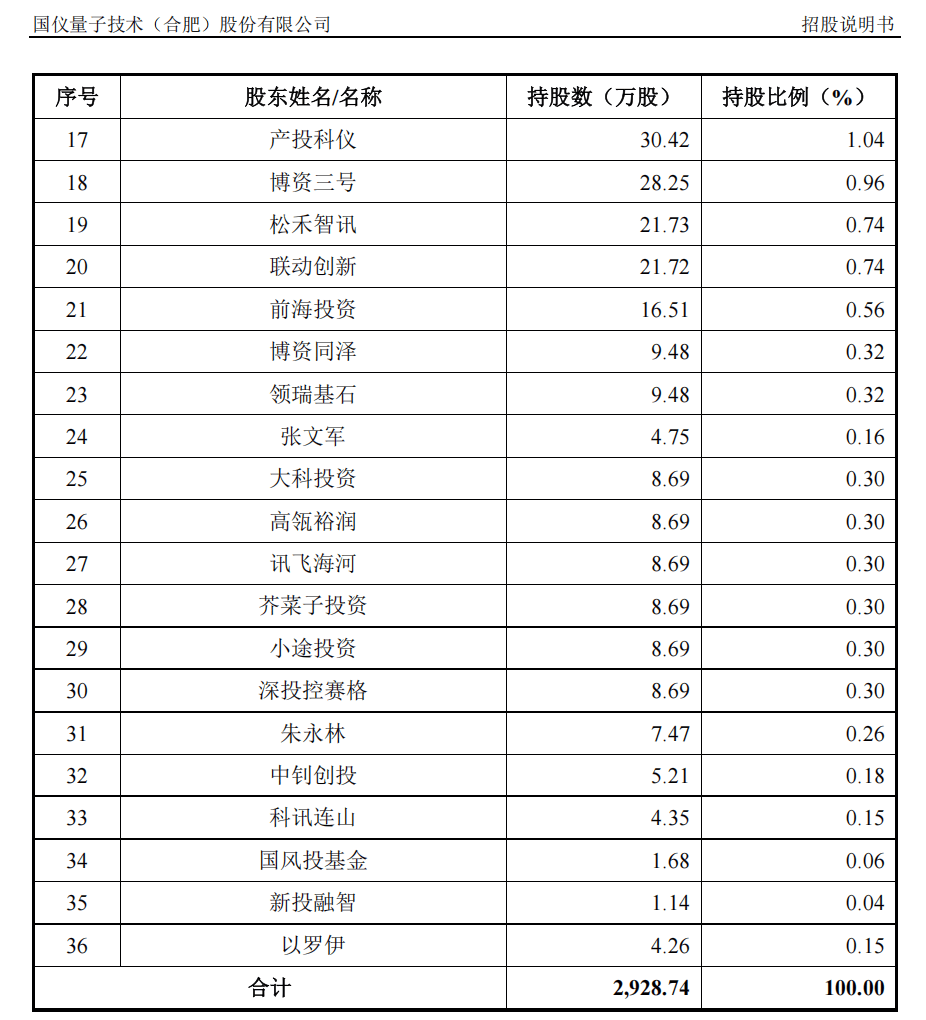招股书信息显示,国仪量子前身为国仪有限。其创始股东有四名,其中,合肥司坤以货币出资822.80万元、中科大及杜江峰以非货币各出资514.25万元、树华科技以货币出资205.70万元。