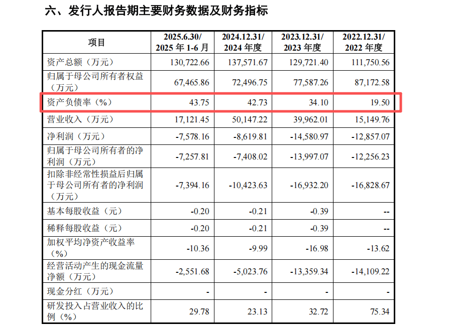 此外,国仪量子资产负债率由2022年的19.50%增长至2024年42.73%,2025年上半年为43.75%,这意味着企业每百元资产中有超过40元是通过负债筹集的。