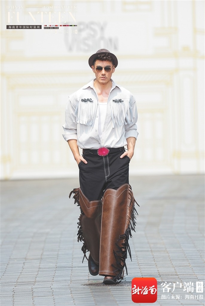 中国知名演员、超模胡兵亮相2026海南青年国际时装周“自贸新篇 风尚龙华”TIPSY VISION开幕大秀。海南日报全媒体记者 陈元才 摄